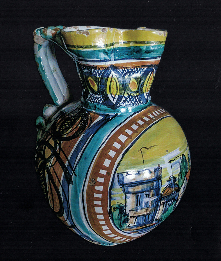 Polychrome majolica sierkruik, versierd landschap (IT) [ 1685 ]